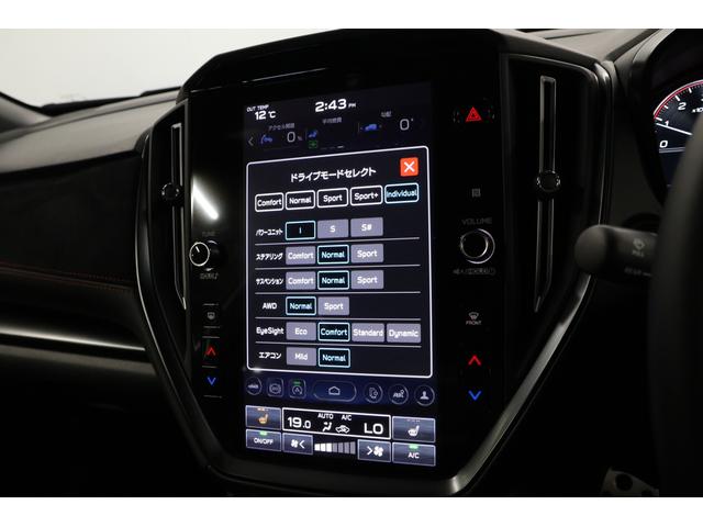 「アイサイトX」搭載車専用の先進的なコックピット。12.3インチのフル液晶メーターと、縦型11.6インチの大型ディスプレイが連携し、ナビ情報や車両状況を直感的にドライバーへ伝えます。