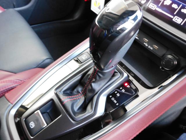 STI専用のボルドーレザーです。見た目以上に深い赤なので、落ち着いた内装です。