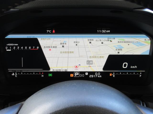 運転に必要な情報をグラフィカルに表示し、少ない視線移動で瞬時に認識できる先進的な液晶メーター。こちらはナビゲーション情報と連携する「地図画面」になります。