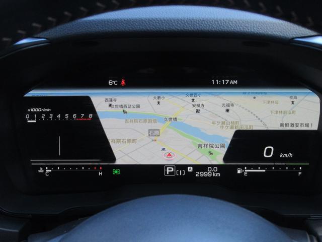 運転に必要な情報をグラフィカルに表示し、少ない視線移動で瞬時に認識できる先進的な液晶メーター。こちらはナビゲーション情報と連携する「地図画面」になります。