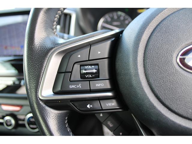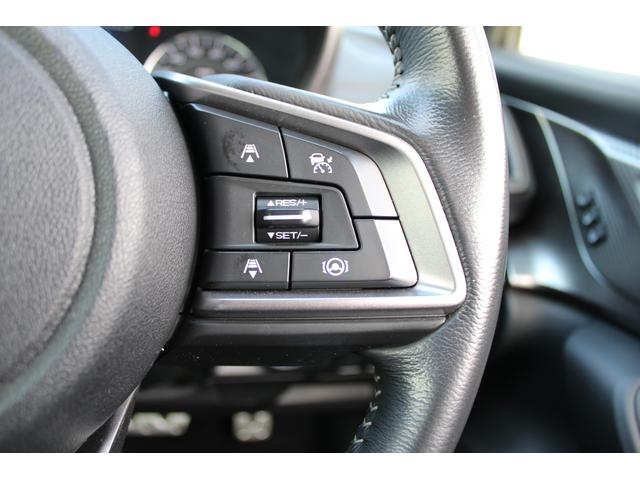 ステアリングスポーク右側に「全車速追従クルーズコントロール」のスイッチがあります、スバルのシステムは停止から高速域まで前車を追従できます、高速巡行だけでなく渋滞時も使えて便利、レーンキープ機能付き