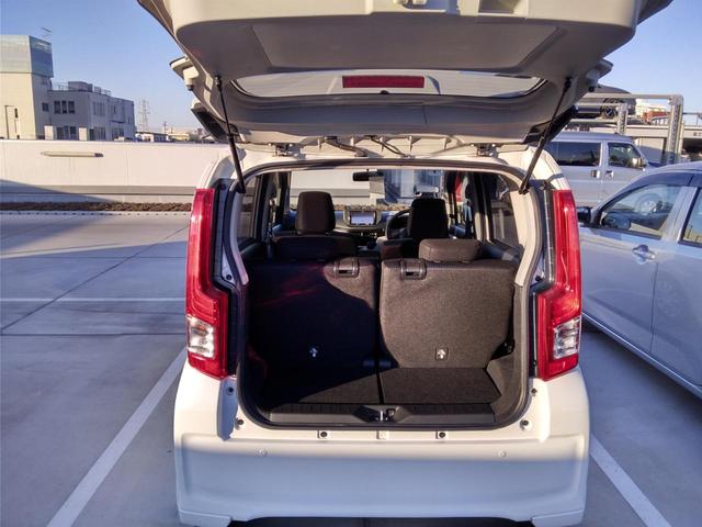 後席は前後スライド&リクライニング機能を備えています。荷物が少ない時は、目一杯下げれば、前席の背もたれに足がぶつかりにくくなります。