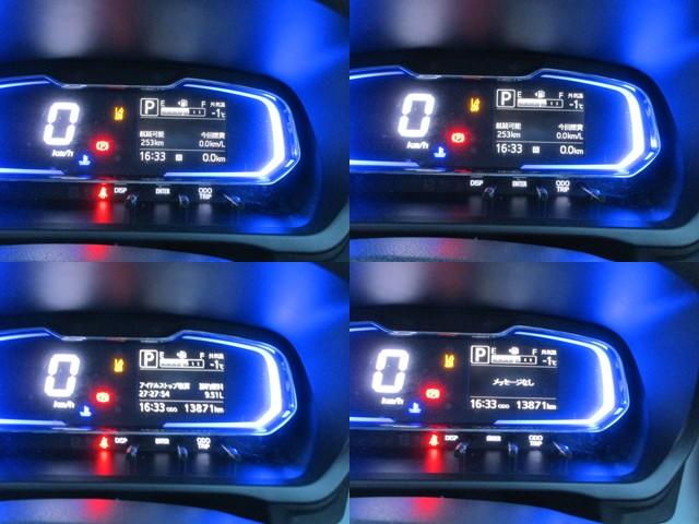 右側ディスプレイには走行距離をはじめ、外気温や航続可能距離や平均燃費、アイドリングストップ時間などを切り替えて表示いたします。