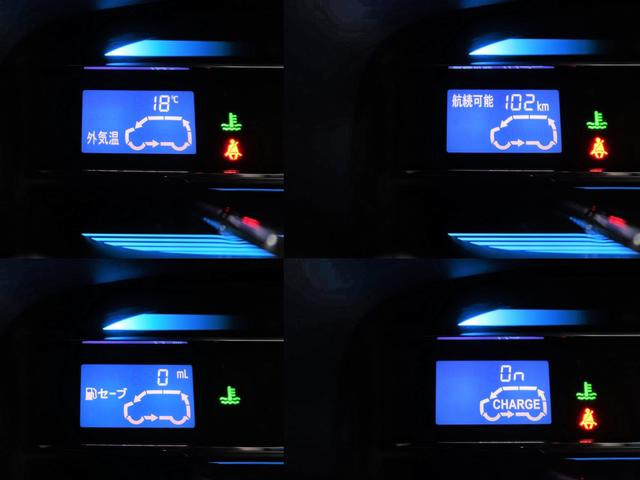 右側ディスプレイには走行距離をはじめ、外気温や航続可能距離や平均燃費、アイドリングストップ時間などを切り替えて表示いたします。