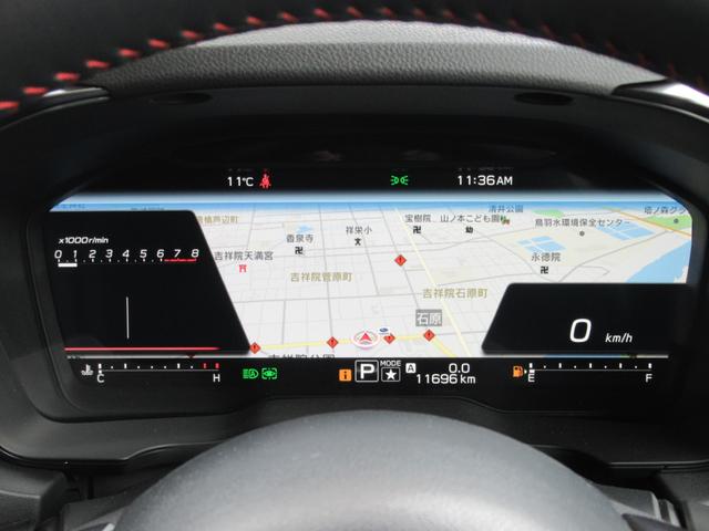 運転に必要な情報をグラフィカルに表示し、少ない視線移動で瞬時に認識できる先進的な液晶メーター。こちらはナビゲーション情報と連携する「地図画面」になります。