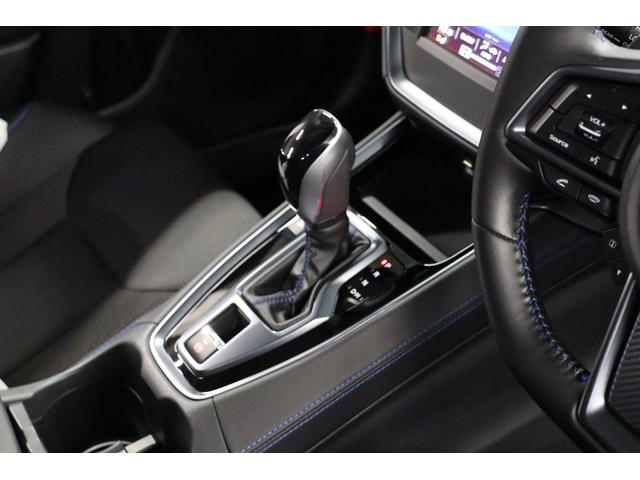 スポーティーなシフト周り。奥には小物入れスペースや電源ソケット、手前にはカップホルダーもあります。カメラのスイッチや電動パーキングブレーキもここにあります。