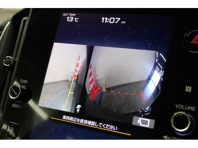バックカメラ装備。ガイドライン表示機能の他、後退時ブレーキアシストのソナーセンサーの情報も表示。車庫入れなどのバックをサポート。
