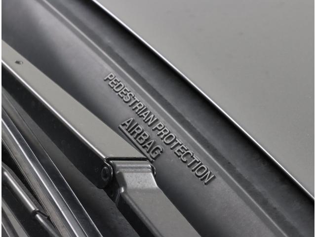 歩行者との衝突を検知した場合、ピラーやフロントガラス下部といった硬いパーツを覆うようにエアバッグが展開。歩行者への衝撃を緩和する歩行者エアバッグです。