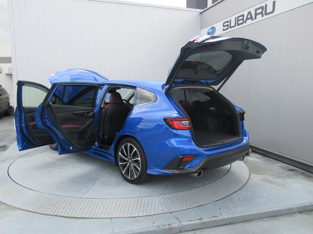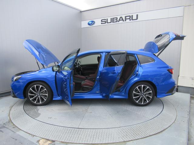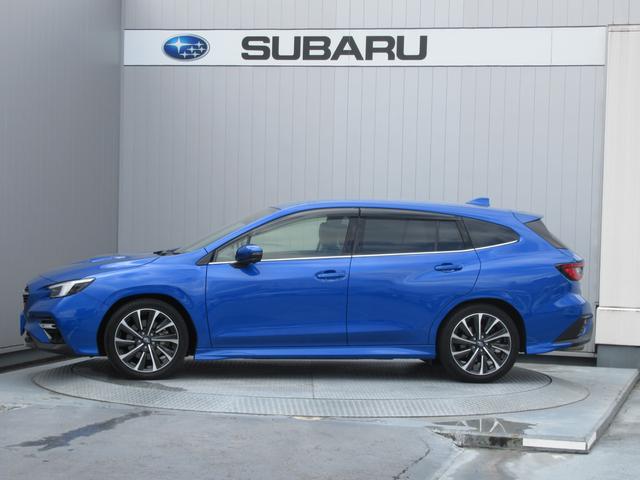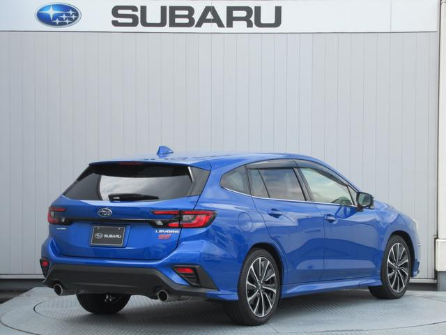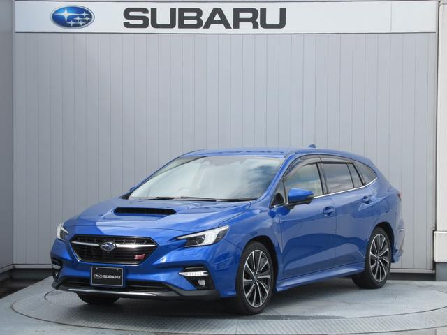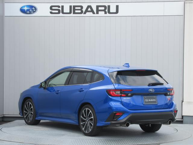 スバルの代表色「WRブルーパール」のレヴォーグ入庫。スマートリヤビューミラー、前後録画型ドライブレコーダー装備。