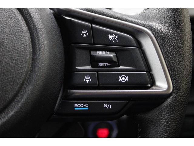 ハンドル右側は、アイサイトの追従機能を設定するボタンが配置。また、アクセルを踏んだ時の加速レスポンスを楽しむことができるスポーツモードと燃費に配慮したインテリジェントモードを切り替えることができます。