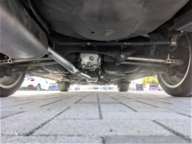 下回りは比較的綺麗な状態です。純正マフラーを装備しておりますが、シルバーの防錆スプレーを塗布されております。また、リアバンパーにマフラーの接触による溶け跡がございます。
