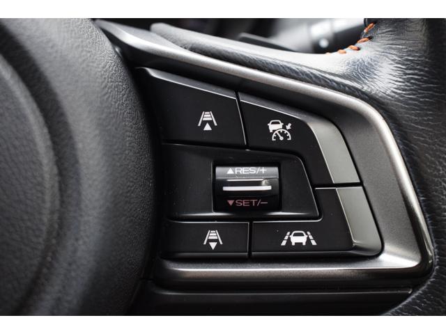 左:ステアリングオーディオコントロールスイッチ。オーディオの操作がお手元で可能です。右:全車速クルーズコントロールの操作スイッチで、アイサイトと連動し前方車両に追従走行できます。