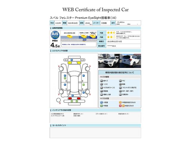 スバル認定U−CARには見やすい評価書がついています。株式会社AISという、車両検査を生業としている専門業者に見てもらい、修復歴、傷、凹み、修理跡、交換跡など1台1台しっかりチェックしてあります。