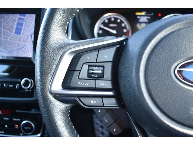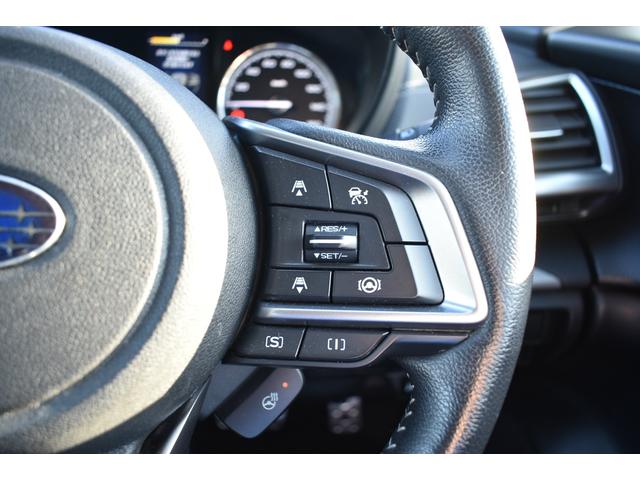 左:ステアリングオーディオコントロールスイッチ。オーディオの操作がお手元で可能です。右:全車速クルーズコントロールの操作スイッチで、アイサイトと連動し前方車両に追従走行できます。