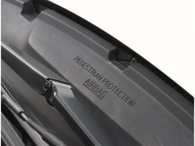 歩行者との衝突を検知した場合、ピラーやフロントガラス下部といった硬いパーツを覆うようにエアバッグが展開。歩行者への衝撃を緩和する歩行者エアバッグです。