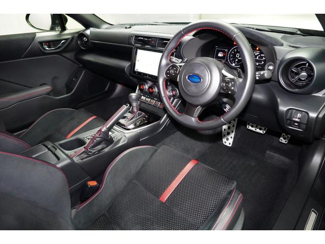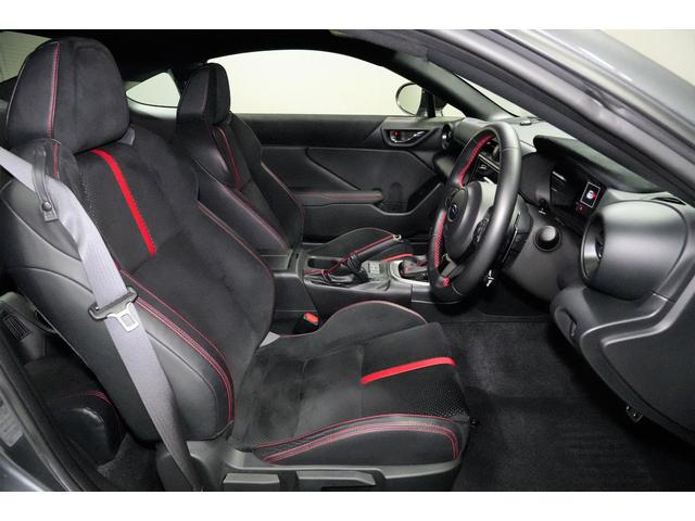 低い着座位置に合わせて専用開発されたシートが乗員の身体をしっかりとホールドし、車との一体感を味わえるように工夫されています。運転席はレバー式シートリフターです。