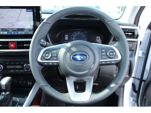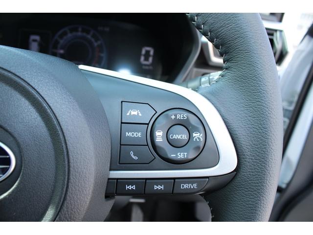ステアリングスポーク右側には「追従クルーズコントロール」のスイッチ、スバルのシステムは停止から高速域まで前車を追従できます、高速巡行だけでなく渋滞時も使えて便利ですレーンキープ機能も付いています
