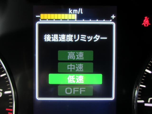 リバース時には、アクセルの踏み具合にかかわらず、速度を一定にする後退速度リミッターが付いております。シフトミス時に急なバックをしないようにする安全機能です。オフにすることも出来ます。