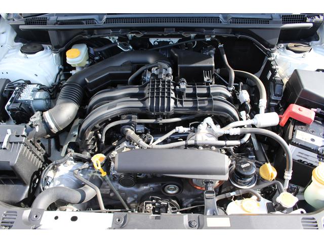 エンジンルーム!国産車ではスバルしか採用していない水平対向エンジンです。車の低重心化に貢献!「走る」、「曲がる」、「止まる」という車の基本性能を高め、運転に「安心」と「愉しさ」を提供します。