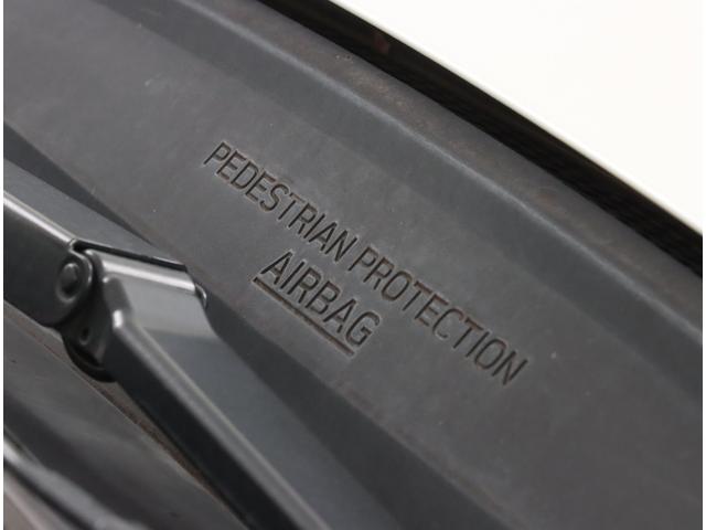歩行者との衝突を検知した場合、ピラーやフロントガラス下部といった硬いパーツを覆うようにエアバッグが展開。歩行者への衝撃を緩和する歩行者エアバッグです。
