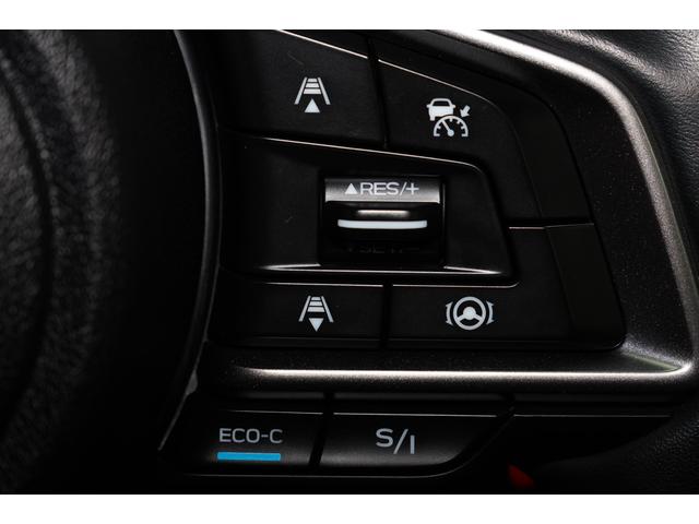 アイサイトの運転支援機能、クルーズコントロールのボタンです。前の車についていく機能や、一定の速さで走行する機能、車線をはみ出さない機能等有ります。