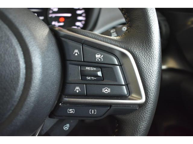 ステアリング右側に装備しているアイサイト・追尾スイッチ。こちらのスイッチにて高速走行時のアイサイト追尾巡航のON・OFFを行います。