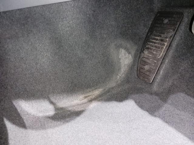 運転席足元、フットレスト付近の素地に擦れによる破れが生じています。