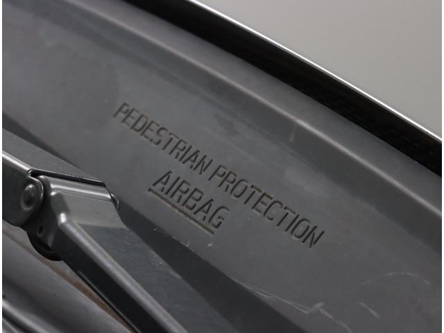 歩行者との衝突を検知した場合、ピラーやフロントガラス下部といった硬いパーツを覆うようにエアバッグが展開。歩行者への衝撃を緩和する歩行者エアバッグです。