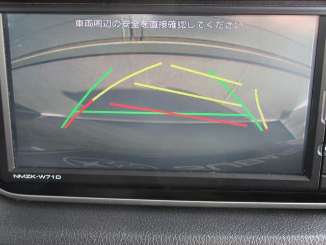 バックカメラの映像はナビ画面に映し出されます。駐車線はステアリング連動仕様なのでハンドルの切り具合も確認できます。
