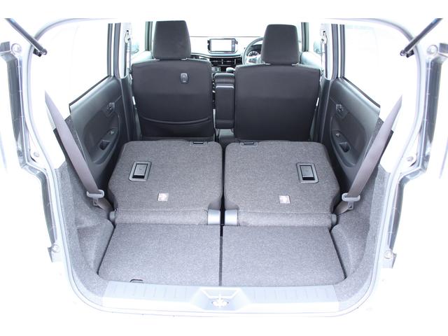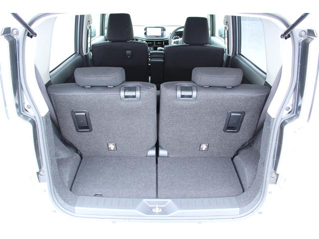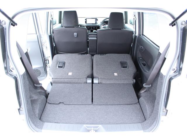 リヤシートの背もたれを倒し、一番前までスライドさせた状態です。足元の空間が無くなりますが、ここまで広いラゲッジに変わります。