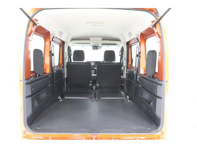 リヤシート左右を倒した状態です。広々としたワンフロアに出来るので、大きな荷物や、長さのある物は斜めにして頂いたりと、工夫次第で様々な荷物を積む事が可能です。