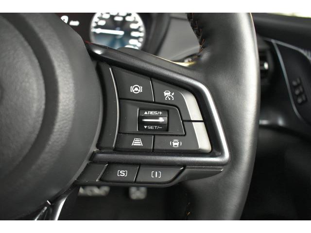 ステアリング右側に装備しているアイサイト・追尾スイッチ。こちらのスイッチにて高速走行時のアイサイト追尾巡航のON・OFFを行います。