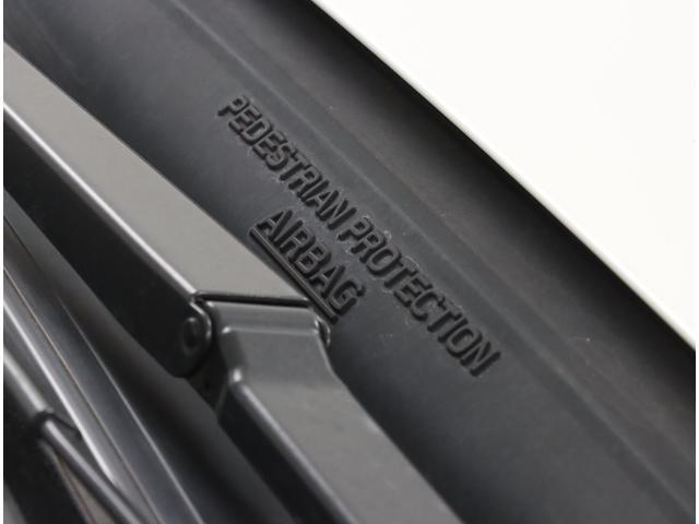 歩行者との衝突を検知した場合、ピラーやフロントガラス下部といった硬いパーツを覆うようにエアバッグが展開。歩行者への衝撃を緩和する歩行者エアバッグです。