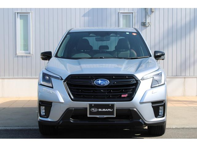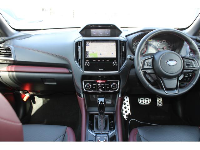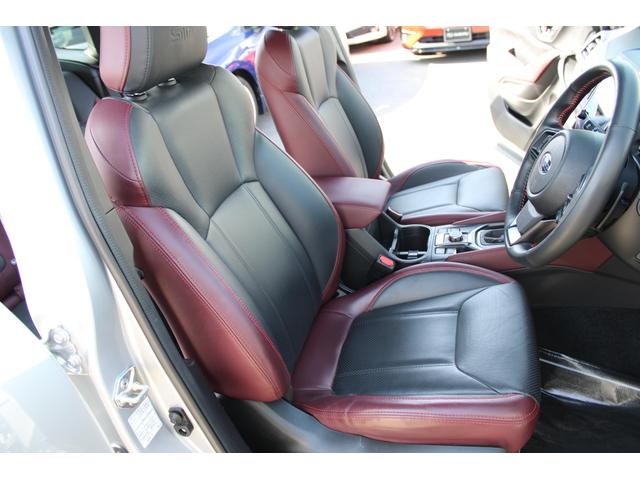 STIスポーツは、後側方警戒支援システム&アダプティブヘッドライト・オート格納&リバース連動ドアミラー・アルミパッド付スポーツペダル・ボルドー&ブラック本革シート・後席シートヒーターなども装備