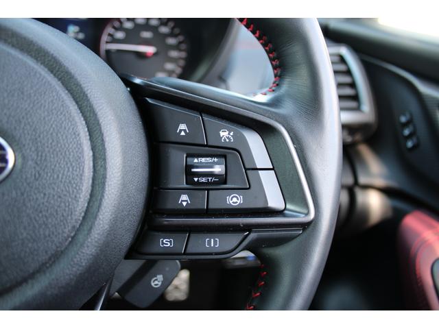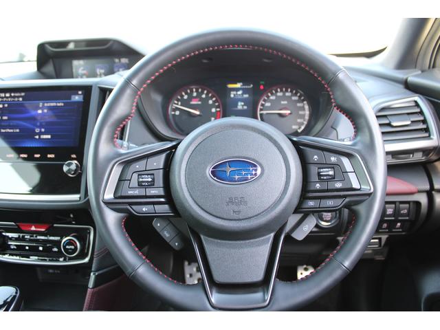 ステアリング周辺の画像、高級感ある「本革巻きステアリング」も装備、STIスポーツは触り心地の良い好感触スムーズレザー&赤ステッチ仕様です