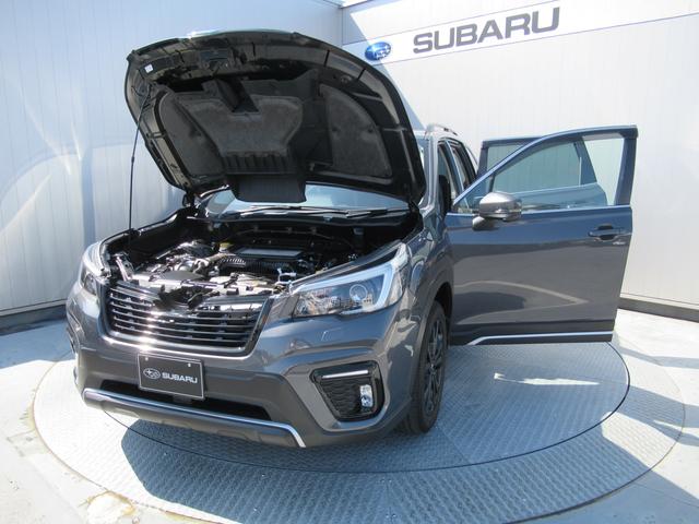 スバルらしい精悍な印象のフロントマスク。ヘッドライトは高輝度のLEDを採用、またステアリング連動機能がありカーブを曲がる際、進行方向を照らして死角を低減します