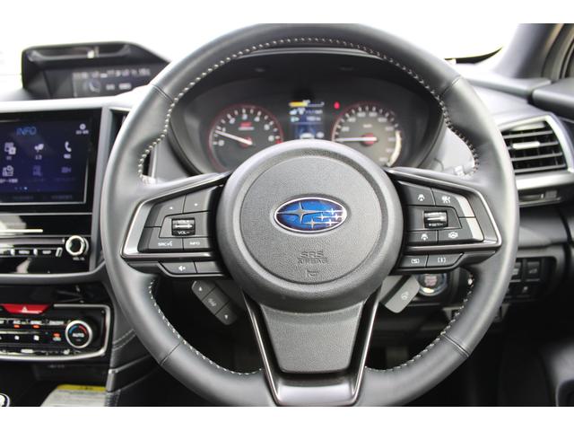 ステアリング周辺の画像、高級感ある「本革巻きステアリング」も装備、STIスポーツは触り心地の良い好感触スムーズレザー&赤ステッチ仕様です