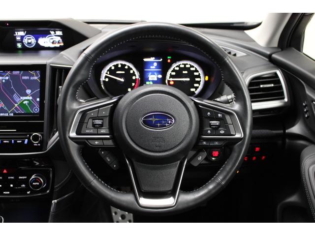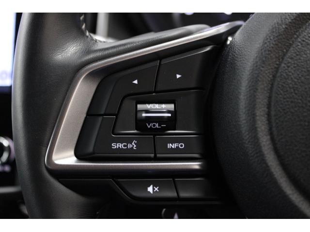 握りやすいハンドルデザインは長時間の運転でも疲労を感じにくい設計で女性にも握りやすい太さを採用、左右にはEyeSightを活用したクルーズコントロールの操作パネルとオーディオコントロールパネルを配置
