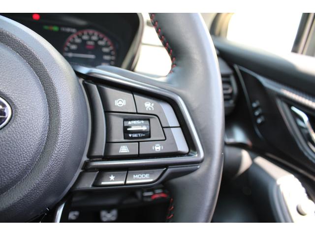 ステアリングスポーク右側には「追従クルーズコントロール」のスイッチ、スバルのシステムは停止から高速域まで前車を追従できます、高速巡行だけでなく渋滞時も使えて便利ですレーンキープ機能も付いています
