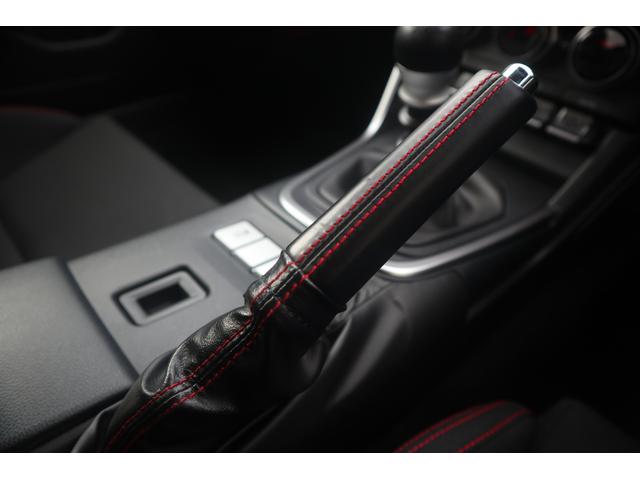 スポーティーな赤ステッチ入りのパーキングブレーキレバーです