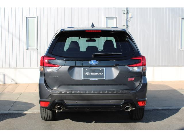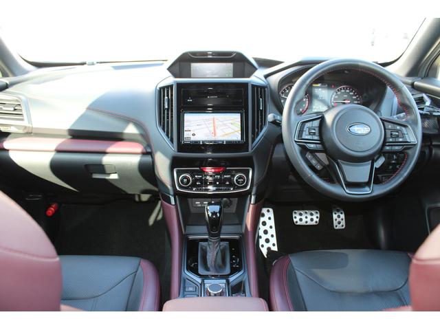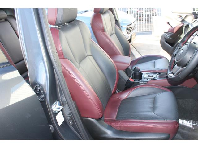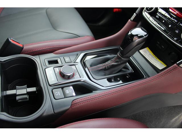 STIスポーツは、後側方警戒支援システム&アダプティブヘッドライト・オート格納&リバース連動ドアミラー・アルミパッド付スポーツペダル・ボルドー&ブラック本革シート・後席シートヒーターなども装備