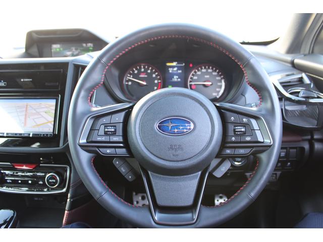 ホイールはSTIスポーツ用のブラックハイラスター塗装されたアルミホイール、ダイレクト感のある18インチ仕様です