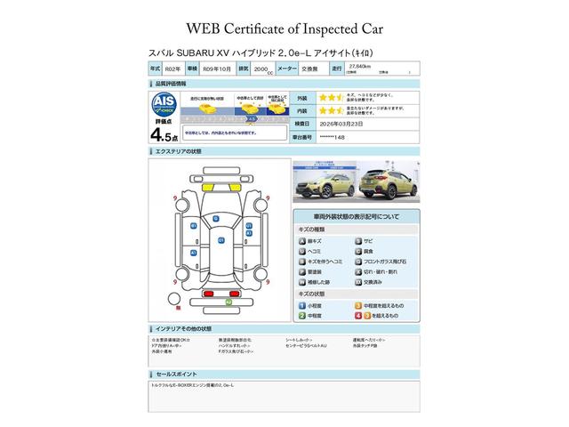 SUBARU認定中古車は第三者機関のAISによる公平な車両検査証も発行されています、ご検討の際の参考にしてください※リヤバンパーの傷周辺、目視しずらいですが少し膨らみを伴っています