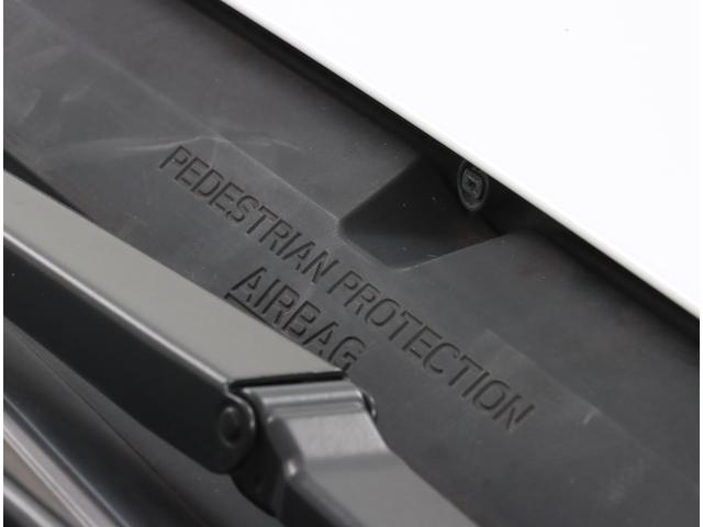 歩行者との衝突を検知した場合、ピラーやフロントガラス下部といった硬いパーツを覆うようにエアバッグが展開。歩行者への衝撃を緩和する歩行者エアバッグです。