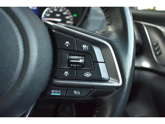 ステアリング右側に装備しているアイサイト・追尾スイッチ。こちらのスイッチにて高速走行時のアイサイト追尾巡航のON・OFFを行います。