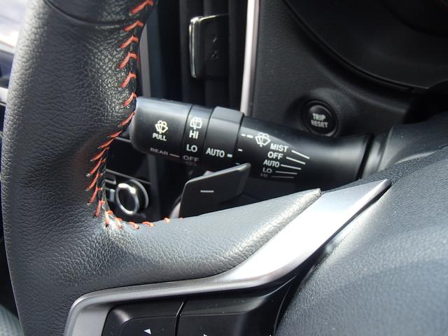 オートワイパースイッチ付き、AUTOに設定しておくと雨を感知して自動でワイパーが作動。とっても便利!。シフトダウンが簡単に操作できるパドルシフト(−)付き