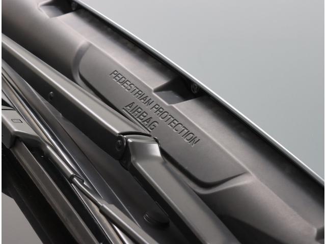 歩行者との衝突を検知した場合、ピラーやフロントガラス下部といった硬いパーツを覆うようにエアバッグが展開。歩行者への衝撃を緩和する歩行者エアバッグです。