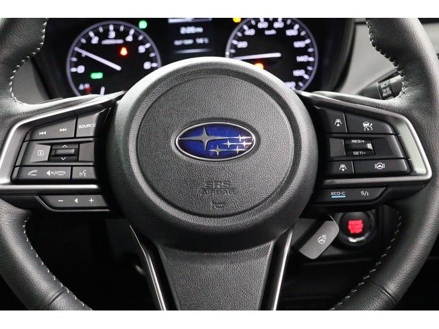 ステアリング右手側にはアイサイトの追従機能設定やSIドライブの操作スイッチが内蔵されています。高速道路など走行中に手を離さず操作できるように安全運転につながる設計になっています。