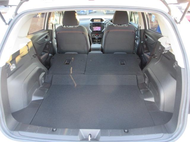 後部座席背もたれを、倒せば長尺物も積み込み可能のです。釣りやゴルフなど幅広くお使いいただけます。また、長距離ドライブでの仮眠や車中泊も出来、疲労軽減に活躍してくれます。