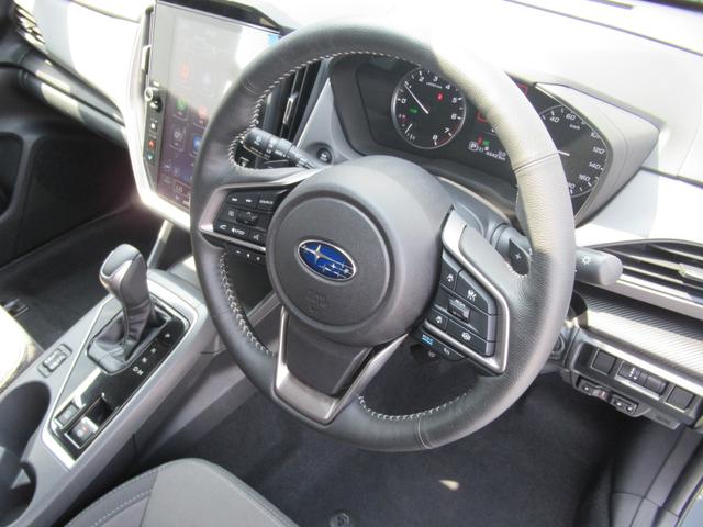 スバルらしい精悍な印象のフロントマスク。コの字型ヘッドライトはLEDを採用、またステアリング連動機能がありカーブを曲がる際、進行方向を照らします。
